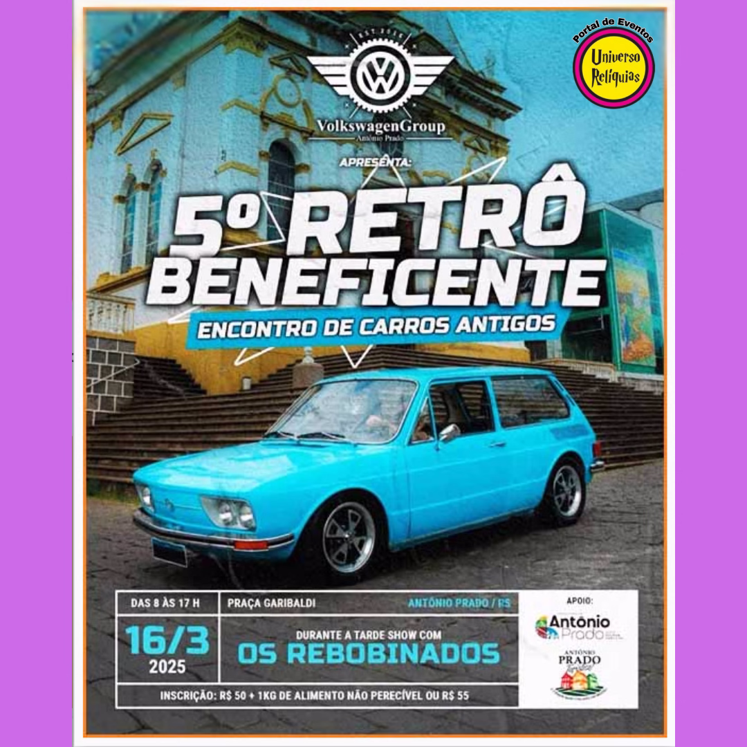 Venha para o 5º retrô beneficente, encontro de Carros Antigos! ✨🚗