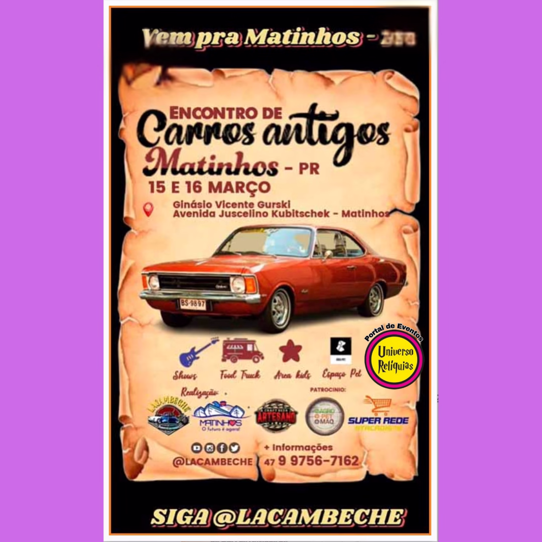 * Evento com entrada livre para expositores de carros antigos e público em geral.