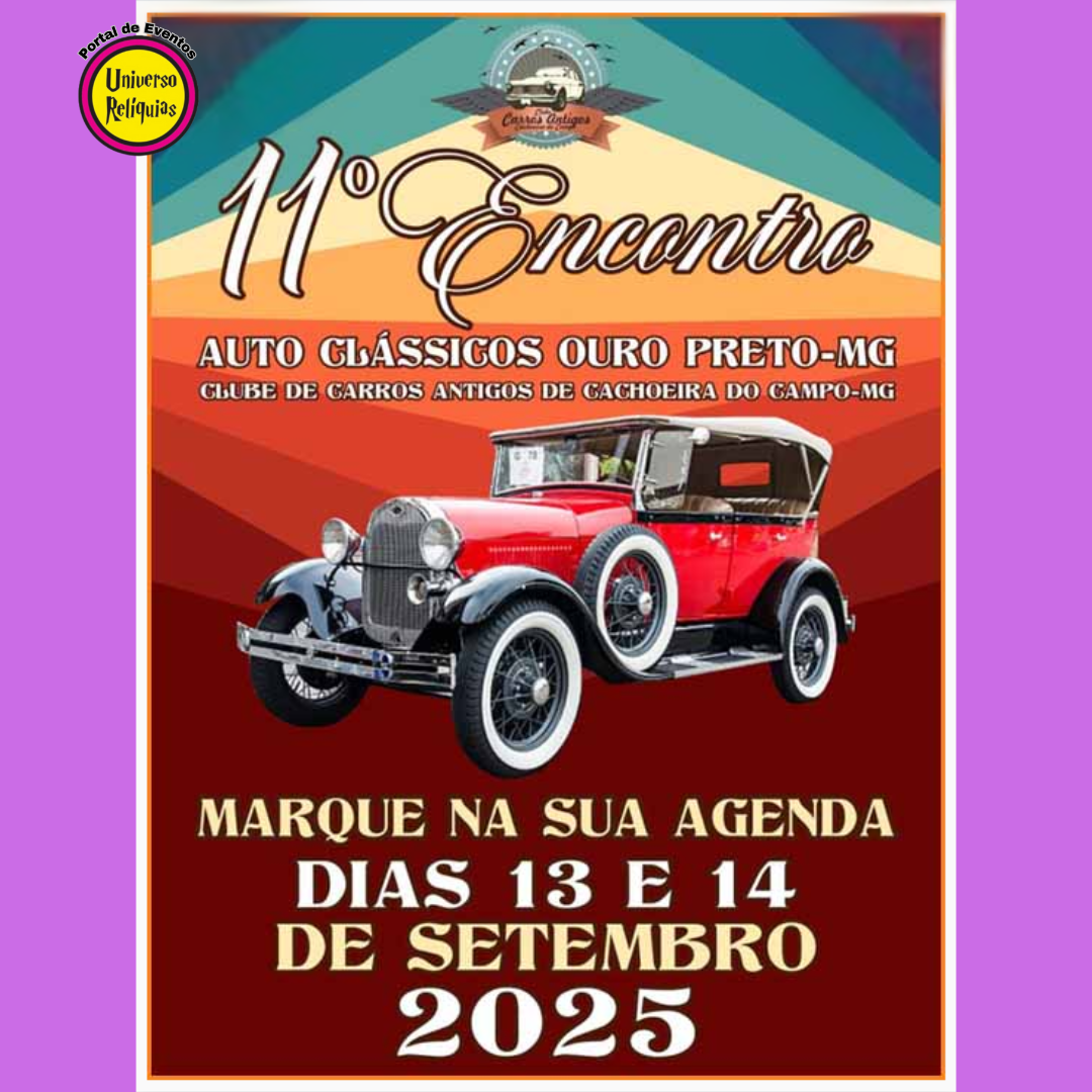 11° Encontro de Autos Clássicos em Ouro Preto - MG Data: 13 e 14 Setembro 2025 Realização: Clube de Carros Antigos de Cachoeira do Campo - […]