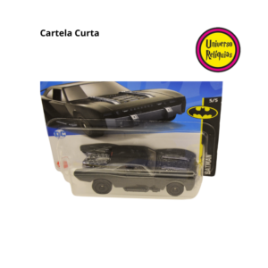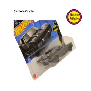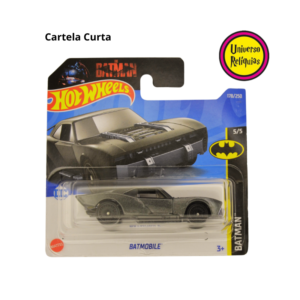 Batmobile The Batman cartela curta é uma réplica detalhada do icônico veículo utilizado no filme The Batman (2022). Inspirado em um design mais realista e funcional, o Batmóvel deste filme combina elementos de um muscle car clássico com tecnologia moderna, refletindo a abordagem mais crua e iniciante do personagem. A miniatura geralmente apresenta detalhes impressionantes, como os faróis, a estrutura robusta, o motor exposto e a pintura escura, capturando a essência sombria e intimidadora do veículo original.