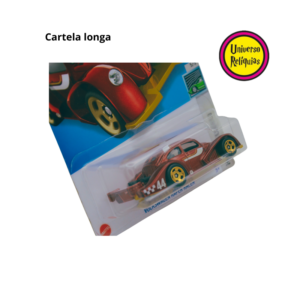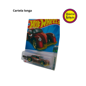 Apresentamos a miniatura Volkswagen Käfer Racer da linha Hot Wheels mainline cartela longa é uma peça icônica para colecionadores e fãs de carros clássicos com um toque de esportividade. Inspirada no lendário Fusca, o Käfer Racer traz uma reinterpretação criativa e agressiva desse clássico da Volkswagen, com elementos estilizados para destacar seu potencial de corrida. Nesta edição o Käfer Racer combina detalhes vibrantes com uma construção robusta. A carroceria apresenta um design aerodinâmico, marcado por arcos de rodas ampliados, um enorme spoiler traseiro e entradas de ar exageradas, características que reforçam sua estética de carro de corrida. As rodas largas com acabamento esportivo e a pintura arrojada completam o visual moderno e chamativo. Os fãs da Hot Wheels valorizam essa miniatura por ser uma homenagem ao espírito inovador do Fusca, combinando nostalgia e adrenalina em uma peça que é perfeita tanto para exposição quanto para corridas nas tradicionais pistas da marca.