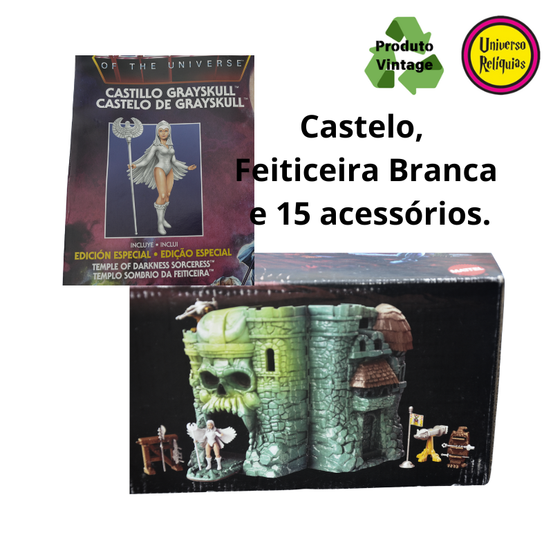 Apresentamos o Castelo de Grayskull é a icónica fortaleza de Eternia, central na saga “He-Man and Masters of the Universe”. Em 2020, a Mattel lançou uma versão atualizada deste emblemático playset, sob a referência GXP44. O playset apresenta um estilo diorama que se desdobra para revelar um interior com quatro cômodos, proporcionando amplo espaço para brincadeiras criativas e exposição. Inclui diversos acessórios relacionados ao universo MOTU, permitindo personalização e enriquecendo as possibilidades de jogo. Elementos interativos como um elevador que funciona de verdade e uma porta secreta adicionam realismo e diversão, agradando especialmente os fãs da versão original. Acompanha uma figura especial da Feiticeira (Sorceress) em sua versão “Temple of Darkness”, exclusiva deste conjunto. Compatível com todas as figuras de 5,5 polegadas da linha Origins (vendidas separadamente), permitindo a recriação de diversas cenas clássicas. Este conjunto é ideal para fãs que desejam reviver aventuras clássicas ou criar novas histórias no universo de “Masters of the Universe”. Originalmente introduzido nos anos 80, o Castelo de Grayskull serve como o centro de poder e mistério no universo de He-Man, sendo palco de inúmeras batalhas entre as forças do bem e do mal. A versão de 2020 mantém-se fiel ao design clássico, proporcionando aos fãs uma experiência nostálgica aliada a atualizações modernas.