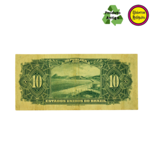 Cédula de 10 mil réis de 1932, é uma peça de grande interesse para colecionadores. Esta cédula foi emitida pelo Tesouro Nacional do Brasil durante o período da República Velha. A cédula pertence à série de emissões feitas no início do século XX, um período em que o Brasil consolidava a sua identidade monetária.