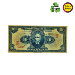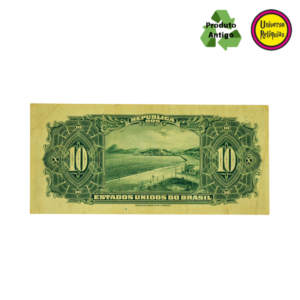 Cédula de 10 mil réis de 1936, é uma peça de grande interesse para colecionadores. Esta cédula foi emitida pelo Tesouro Nacional do Brasil durante o período da República Velha. A cédula pertence à série de emissões feitas no início do século XX, um período em que o Brasil consolidava a sua identidade monetária.