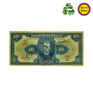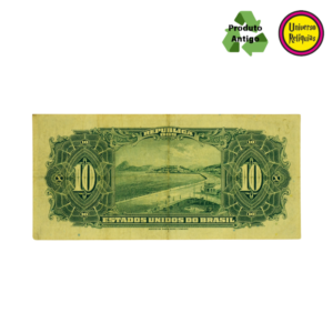 Cédula de 10 mil réis de 1942, é uma peça de grande interesse para colecionadores. Esta cédula foi emitida pelo Tesouro Nacional do Brasil durante o período da República Velha. A cédula pertence à série de emissões feitas no início do século XX, um período em que o Brasil consolidava a sua identidade monetária.