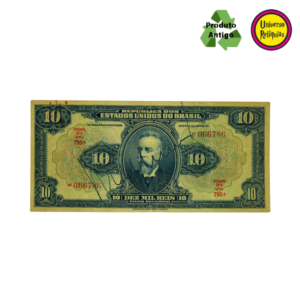 Cédula de 10 mil réis de 1942, é uma peça de grande interesse para colecionadores. Esta cédula foi emitida pelo Tesouro Nacional do Brasil durante o período da República Velha. A cédula pertence à série de emissões feitas no início do século XX, um período em que o Brasil consolidava a sua identidade monetária.