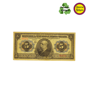 Cédula de 5 mil réis de 1913 é uma peça histórica do Brasil, emitida durante o período republicano. Ela é conhecida por apresentar a figura do Barão do Rio Branco e alegorias que simbolizam a indústria e o comércio, refletindo a valorização do desenvolvimento econômico e das figuras políticas da época.
