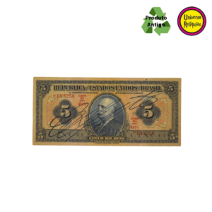 Cédula de 5 mil réis de 1924 é uma peça histórica do Brasil, emitida durante o período republicano. Ela é conhecida por apresentar a figura do Barão do Rio Branco e alegorias que simbolizam a indústria e o comércio, refletindo a valorização do desenvolvimento econômico e das figuras políticas da época.