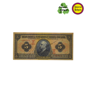 Cédula de 5 mil réis de 1924 é uma peça histórica do Brasil, emitida durante o período republicano. Ela é conhecida por apresentar a figura do Barão do Rio Branco e alegorias que simbolizam a indústria e o comércio, refletindo a valorização do desenvolvimento econômico e das figuras políticas da época.