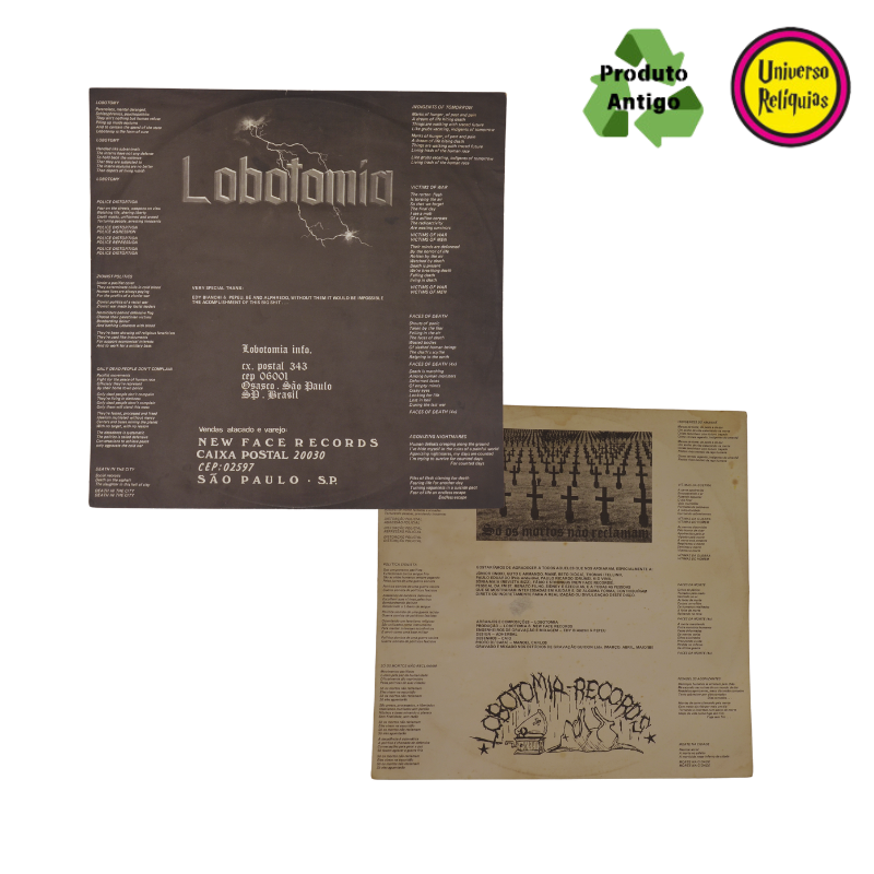História do Álbum: Formada em 1984 em São Paulo, a Lobotomia rapidamente se destacou na cena punk brasileira. Em 1985, participaram da coletânea Ataque Sonoro pela gravadora independente Ataque Frontal, ao lado de bandas como Cólera, Garotos Podres e Ratos de Porão. No ano seguinte, com a formação composta por Caio (vocal), Adherbal (guitarra), Grego (bateria) e Zezé (baixo), a banda gravou seu álbum homônimo. O LP foi produzido pela própria banda, com prensagem e distribuição pela New Face Records em 1987. O álbum apresenta um som metálico e inovador, diferenciado de tudo que se ouvia no punk brasileiro até então. A faixa Só Os Mortos Não Reclamam chegou a ser incluída na programação regular da 89 FM, conhecida como Rádio Rock, algo incomum para o gênero na época. Este álbum destaca-se por sua sonoridade pesada e letras críticas, refletindo as inquietações sociais da época.