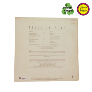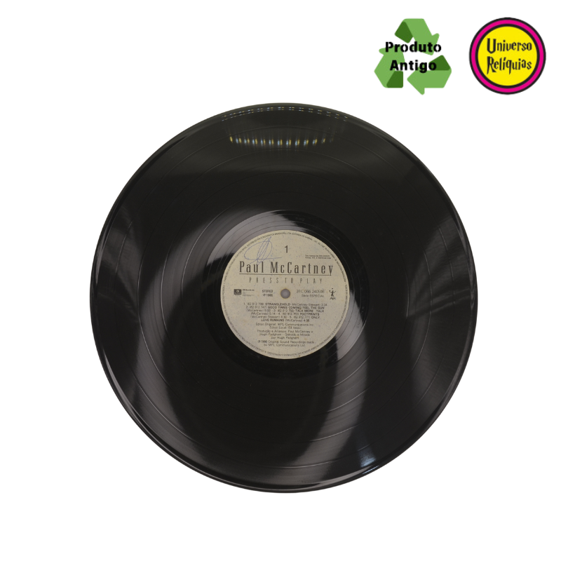 O álbum em disco de vinil Press to Play de Paul McCartney lançado em 1986. O disco foi um dos mais experimentais de McCartney até aquele momento, incorporando influências do new wave e da música eletrônica, além de ser notavelmente mais moderno em comparação aos seus trabalhos anteriores. McCartney experimentou novas técnicas de gravação e efeitos sonoros, o que deu ao álbum um toque mais contemporâneo para os anos 80.