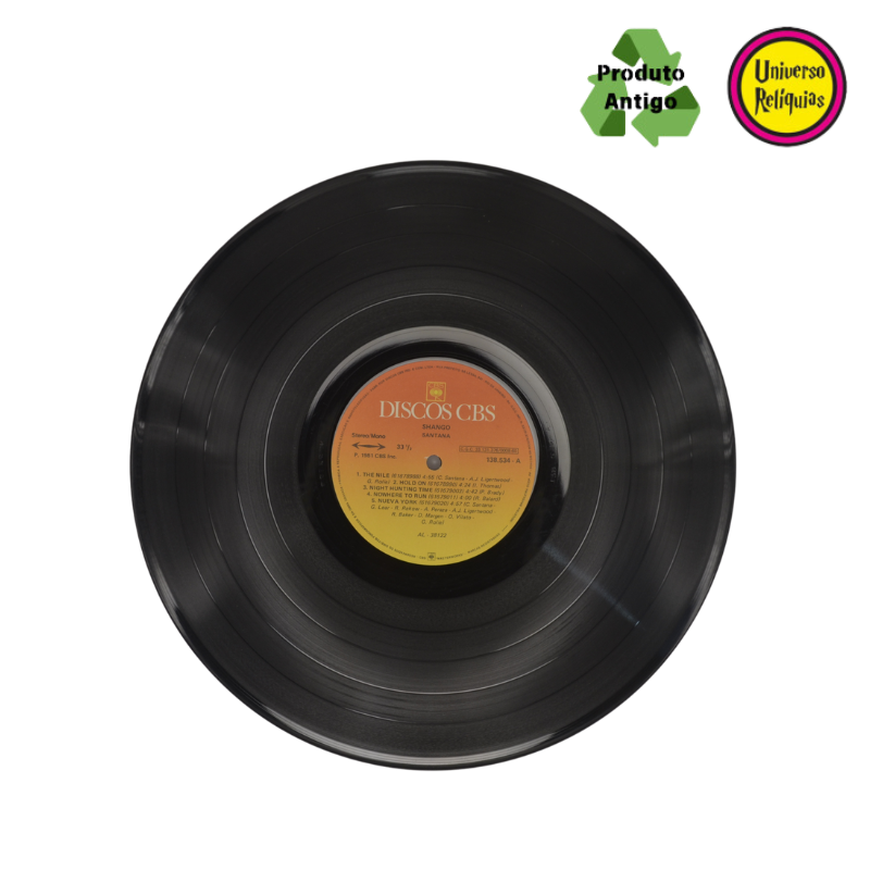 O álbum em disco de vinil Shangó que representou uma continuação do compromisso de Santana em misturar o rock tradicional com ritmos latinos e influências espirituais. O álbum marcou a fase em que a banda explorava mensagens espirituais, universais e de renovação, muito alinhadas ao interesse de Carlos Santana por temas místicos.