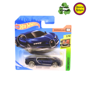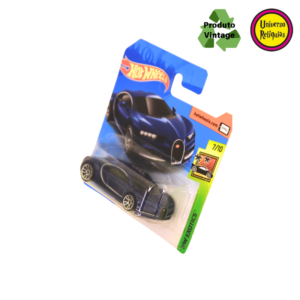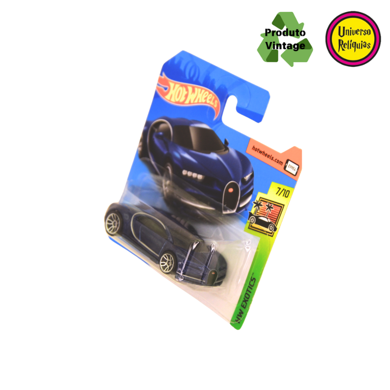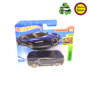 Apresentamos a miniatura 16 Bugatti Chiron azul escuro Hot Wheels CARTELA CURTA Em 2018 na linha mainline HW Exotics da Hot Wheels, sendo marca de carrinhos em miniatura mais famosa do mundo, decidiu trazer toda a emoção e o glamour da Bugatti Chiron para as pistas de brinquedo. A miniatura em escala 1:64 captura as linhas elegantes e os detalhes icônicos do carro real, proporcionando aos colecionadores e entusiastas a oportunidade de ter um pedaço desse supercarro em suas mãos. A Hot Wheels trouxe o Bugatti Chiron para sua linha após anos sem lançar modelos da Bugatti, tornando o Chiron um retorno notável. O carro é baseado no modelo de produção real da Bugatti, que estreou em 2016 como sucessor do Bugatti Veyron, apresentando melhorias significativas em desempenho e design curvo e elegante do carro real, incluindo detalhes como os faróis, a grade em forma de ferradura e as curvas aerodinâmicas.