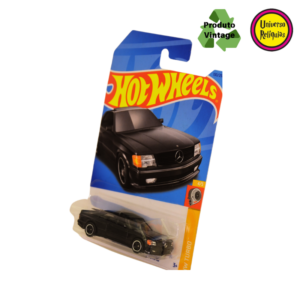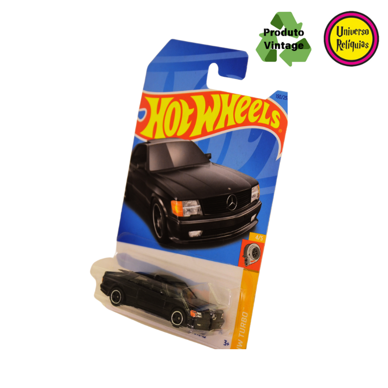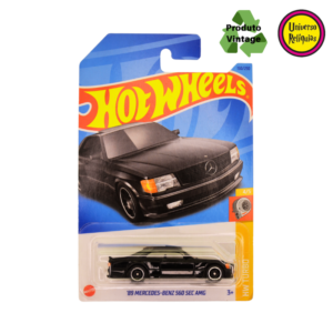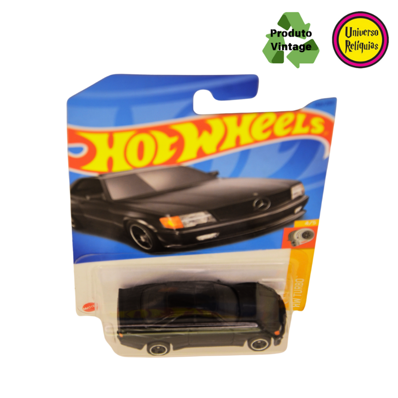Miniatura Hot Wheels 89 Mercedes-Benz 560 SEC AMG preta 2021 da linha mainline Turbo da Hot Wheels, é uma miniatura que captura a essência de um dos carros esportivos mais icônicos da década de 80.