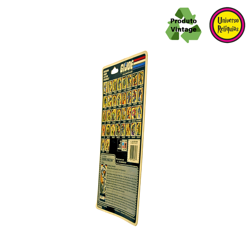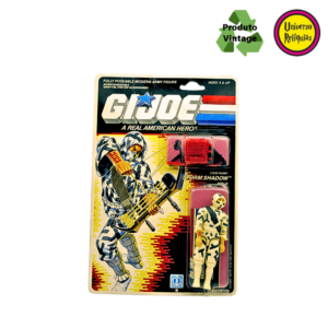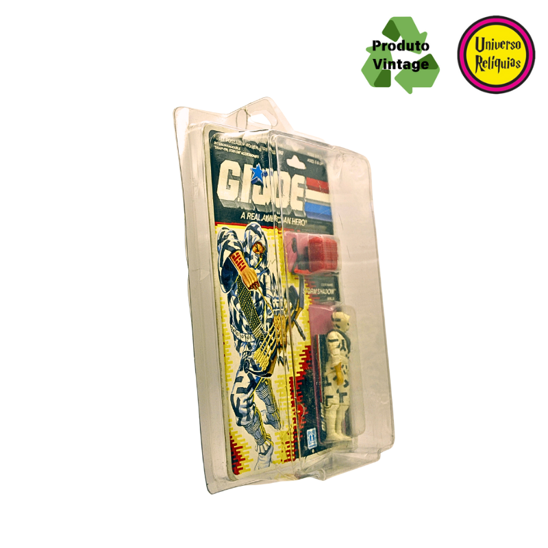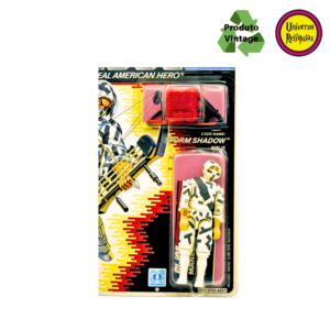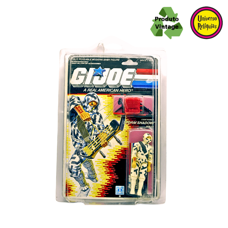Apresentamos a figura de ação O Storm Shadow Ninja de 1987, fabricado pela Hasbro, é uma figura de ação da linha G.I. Joe: A Real American Hero. Essa versão do personagem é a segunda edição (v2) do Storm Shadow, diferenciando-se da versão original de 1984 por sua nova coloração e associação com os G.I. Joe, em vez da organização Cobra. Diferente da primeira versão, esse Storm Shadow tem uma estética mais samurai, com um uniforme branco camuflado. A embalagem em perfeito estado de conservação destaca a raridade desta figura de ação original de 1987, muito valorizada por colecionadores especialmente quando vem com todos os acessórios.