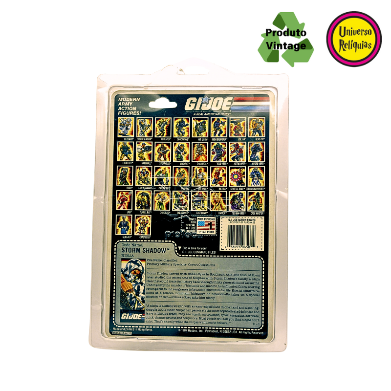 Storm Shadow cujo nome verdadeiro é Thomas Arashikage, tem uma história rica e complexa. Ele é um mestre de artes marciais e um ninja excepcional, conhecido por sua lealdade, disciplina e habilidades de combate. Storm Shadow teve um passado trágico, tendo sido traído e quase morto por seu próprio clã ninja. Esse evento o levou a buscar vingança e a se juntar à equipe G.I. Joe, onde ele se tornou um membro valioso e confiável. Ao longo dos anos, Storm Shadow se tornou um dos personagens mais populares de G.I. Joe, aparecendo em várias séries de quadrinhos, desenhos animados e filmes. Sua história de redenção e sua habilidade em combate o tornaram um favorito dos fãs.