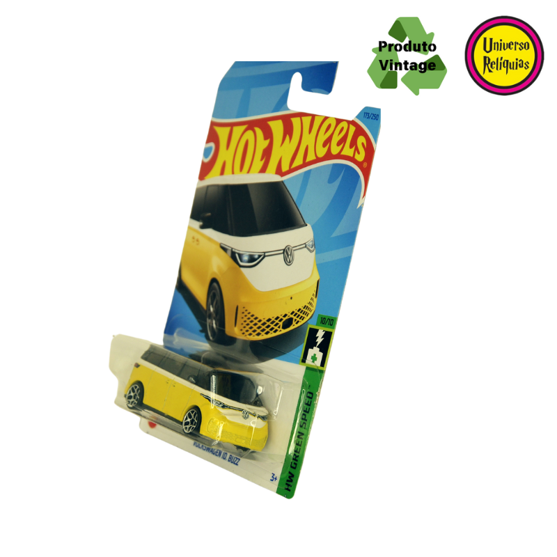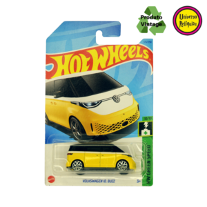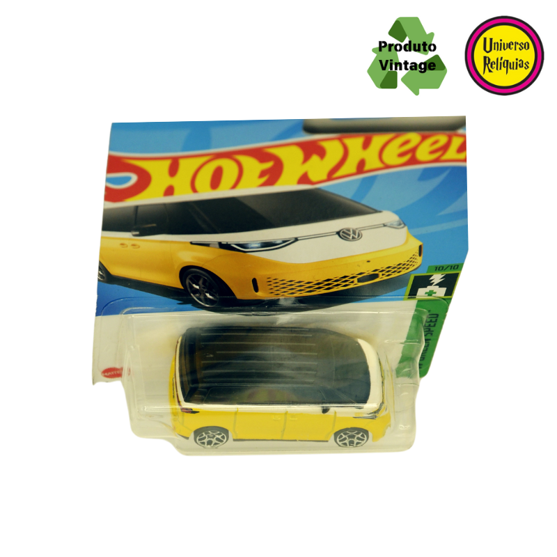 Apresentamos A Volkswagen ID. Buzz é uma releitura moderna do icónico Volkswagen Kombi, mas adaptada para o futuro com tecnologia elétrica. A Hot Wheels, marca famosa pelos seus carros em miniatura, lançou uma versão deste modelo em 2021, destacando o design futurista e a ligação emocional com a nostalgia da clássica Kombi. A Volkswagen ID. Buzz original foi apresentada como conceito em 2017 no Salão de Detroit, inspirada na famosa T1, mas com linhas futuristas e propulsionada por motores elétricos. A Hot Wheels capturou a essência deste veículo ao criar uma miniatura de escala reduzida que homenageia tanto o design do modelo real quanto a popularidade das Kombis no mundo colecionável. A versão de 2021 da Hot Wheels da linha HW green speed destaca-se pela pintura amarela vibrante com detalhes em branco, recriando o estilo descontraído e aventureiro da Volkswagen clássica, mas com o toque moderno da ID. Buzz.